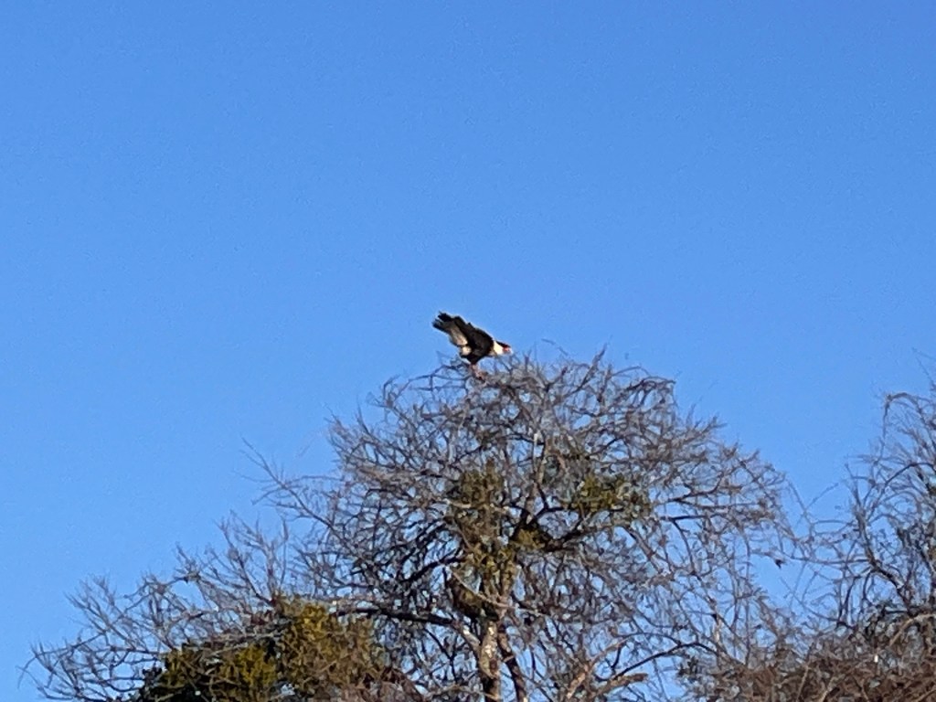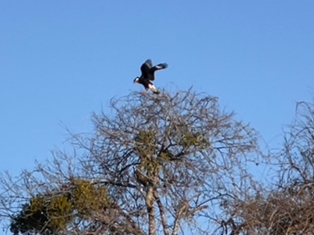 Around here, we call them Mexican eagles, as they are the bird on the Mexican flag, after all. They are expanding their range northwards. They weren’t here when we first arrived; I saw my first ones in DeWitt County, where Lee’s dad was from. I think they’re very fun to watch.