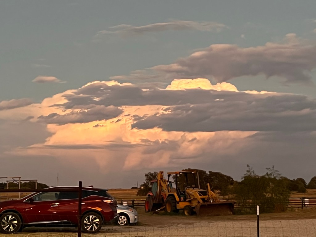 No wonder that cow had been mooing so hard this morning! And her milk bag was very full. I got in touch with Tyler then finished working and getting ready. Just as we were finally leaving, Tyler arrived and I showed him where the calf was. The poor thing was getting hot and breathing hard, so I’m glad it got rescued. All it took was for Tyler to walk up to it and it scooted back through the fence. I hope there was a family reunion and the baby got tagged.