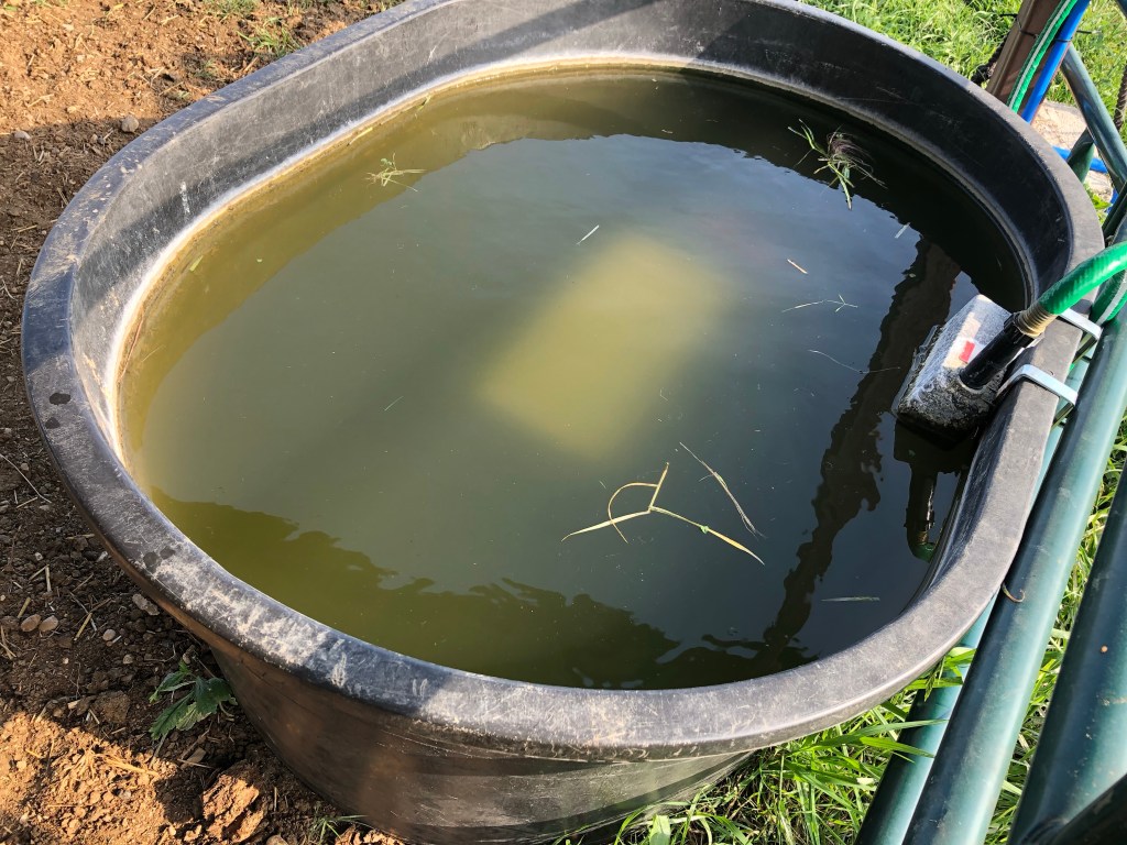 Alfred has not managed to get rid of many larvae, but he does explain why we have a hose right there. He and Goldie are heavy drinkers.