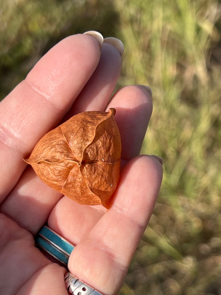 Heading down Heading up. This is a ribbon snake that was eating a frog. Sniff. The horses’ favorite snack. Johnson grass. Dove weed. I like. Others don’t. Lady beetle sans spotsWhat is this smooth spot? Fiona’s rolling area. Beautiful milkweed seed ready to fly away. Western ragweed leaves smell good. I probably shouldn’t have sniffed. A-Choo. My second least favorite plant. Buffalo bur. Intrepid Mexican hats. Balloon vine seed pod. They float. Balloon vine seeds look like yin and yang. Sorry the false foxglove is blurry.