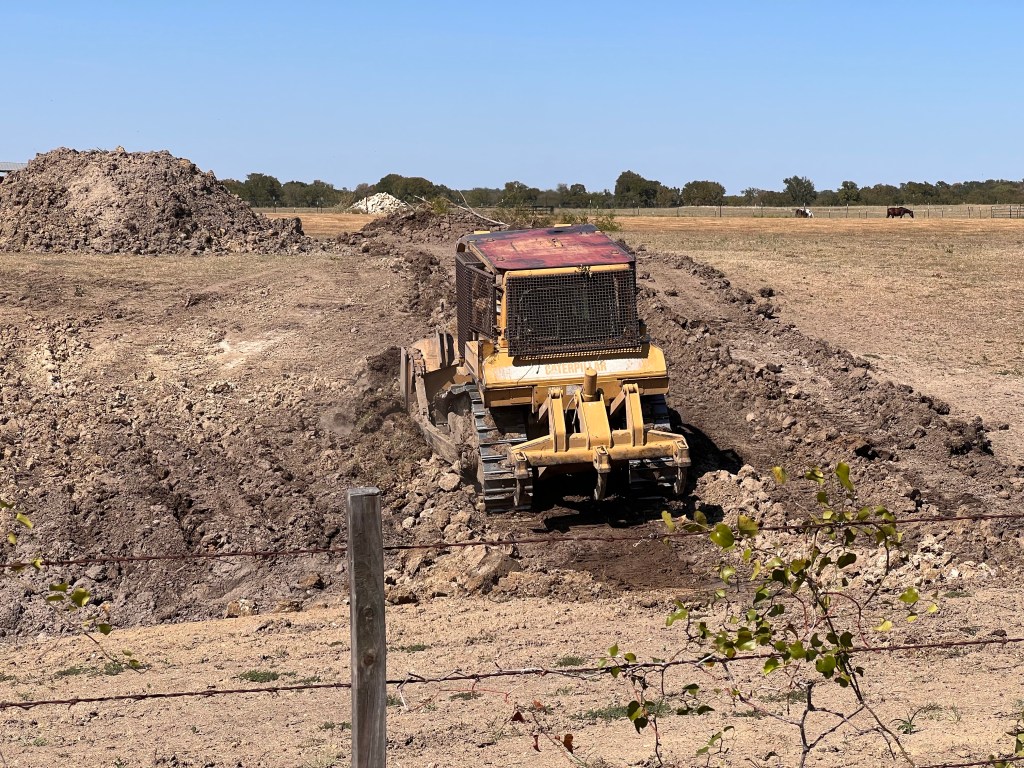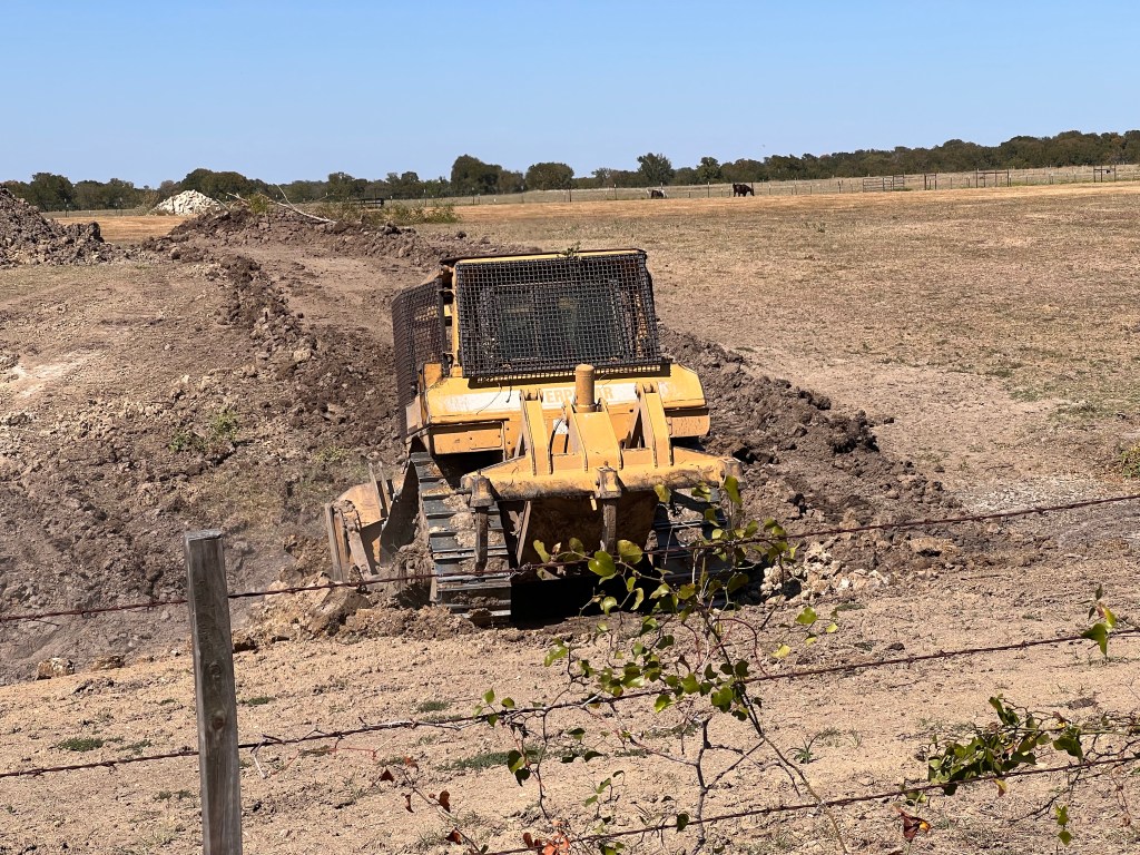 While it’s all dry, the tenants have had the ponds (cattle tanks) in the area between our house and the creek dug out. They silt up and need it every so often. since the guy already had the dozer here, Lee seized the chance to dig ours out, too.