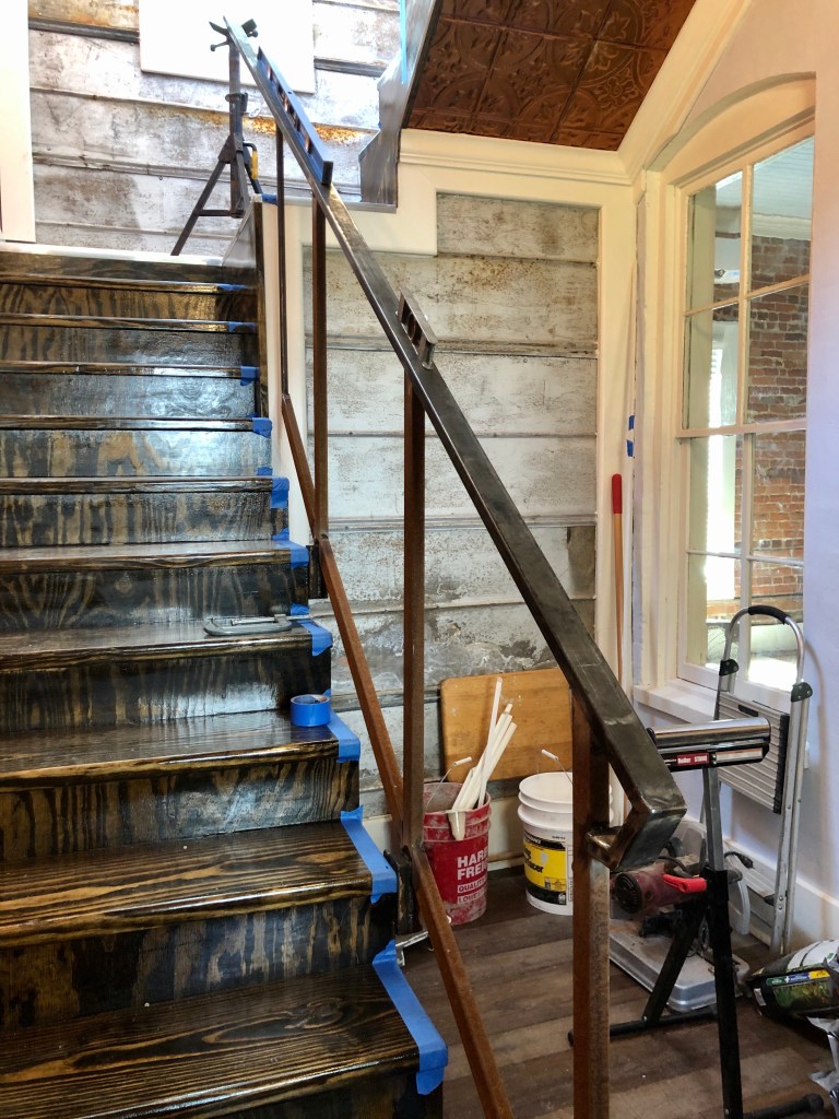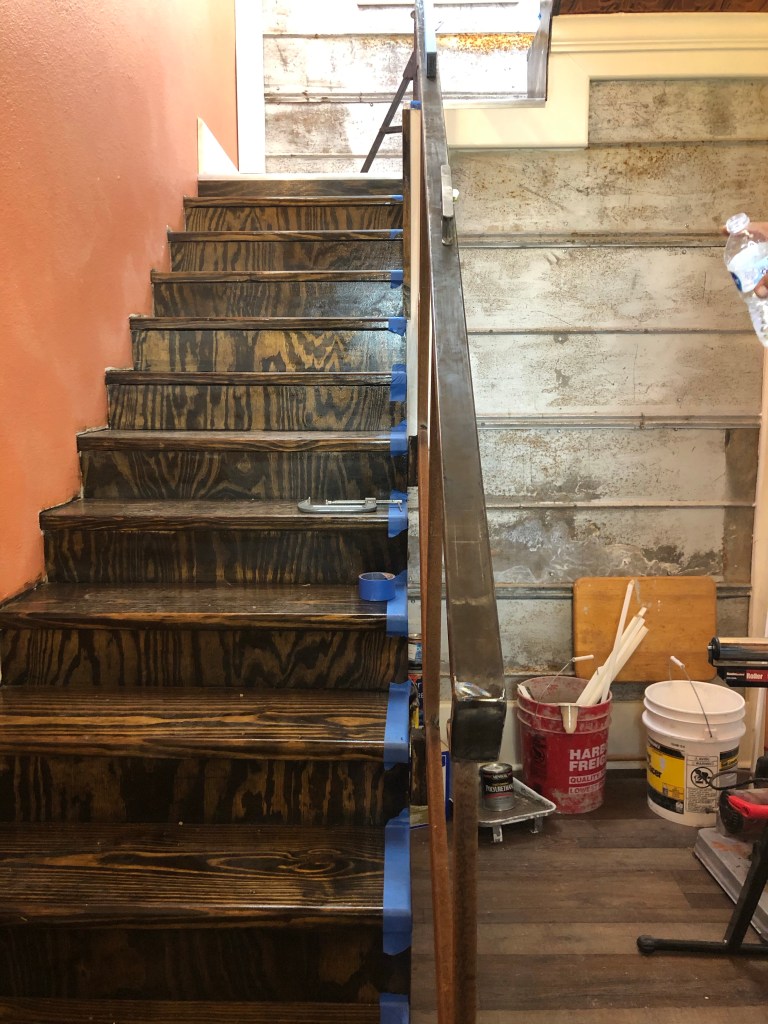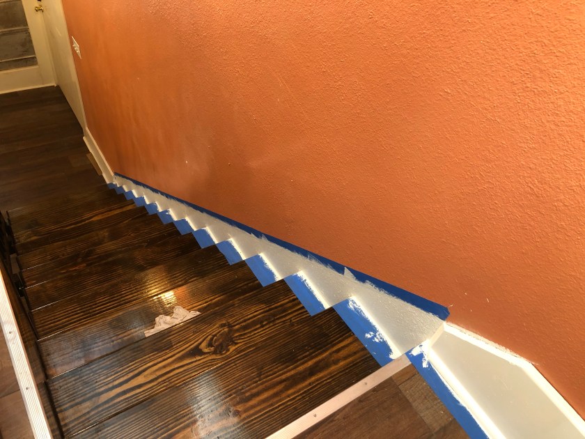 And the white trim along the edges of the stairs is being painted on. That’s the final step to stairway completion. What a journey that has been!