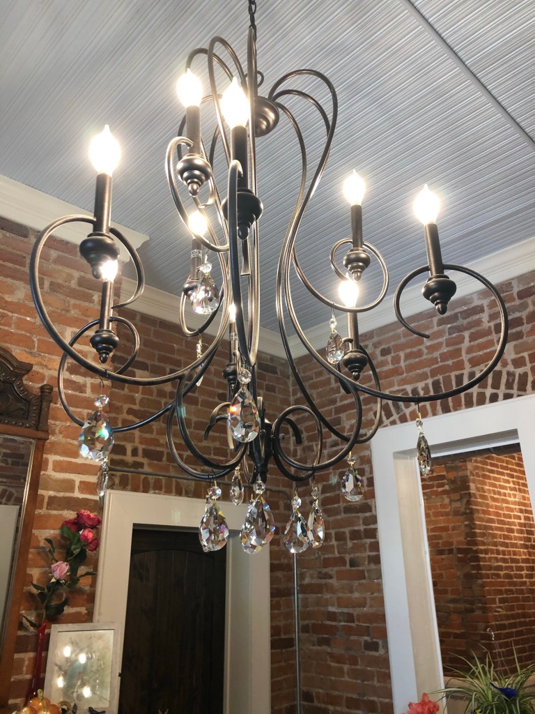 But, the most best accomplishment of the day was that my little black hooks arrived from Amazon, and they worked just great to hold the crystals I bought for my chandelier.