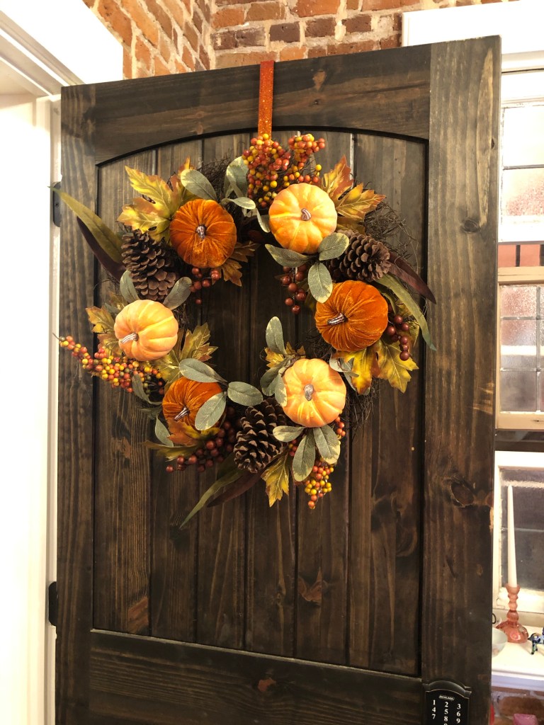 After surviving (set the bar low, Lee said) the three days of planning meetings with hundreds of people on Zoom, I was happy to find a box on the porch. It contained my new autumn wreath. It’s not too fancy, but will look good on my office door. I wanted to wait until after Labor Day, but I needed some fun, darn it! That will get me through another couple of months, anyway.