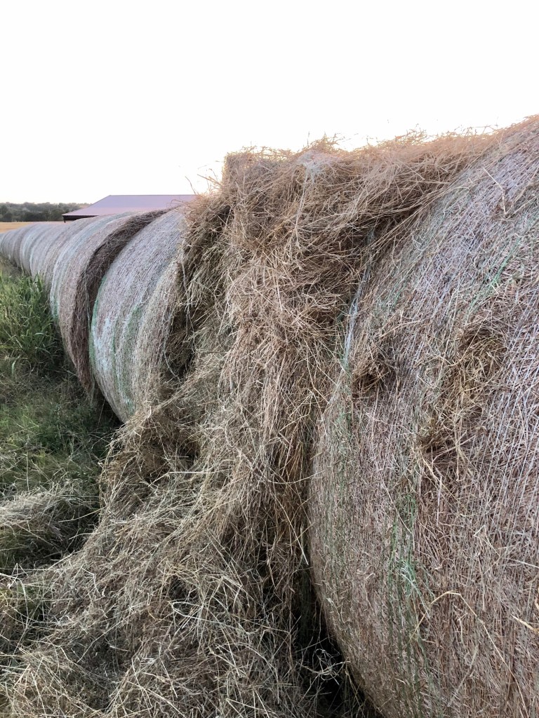 As you may recall from yesterday, Apache reached over the fence and chomped into the tenants’ round bales, nearly ingesting some of the netting. We wanted to nip that habit in the bud.