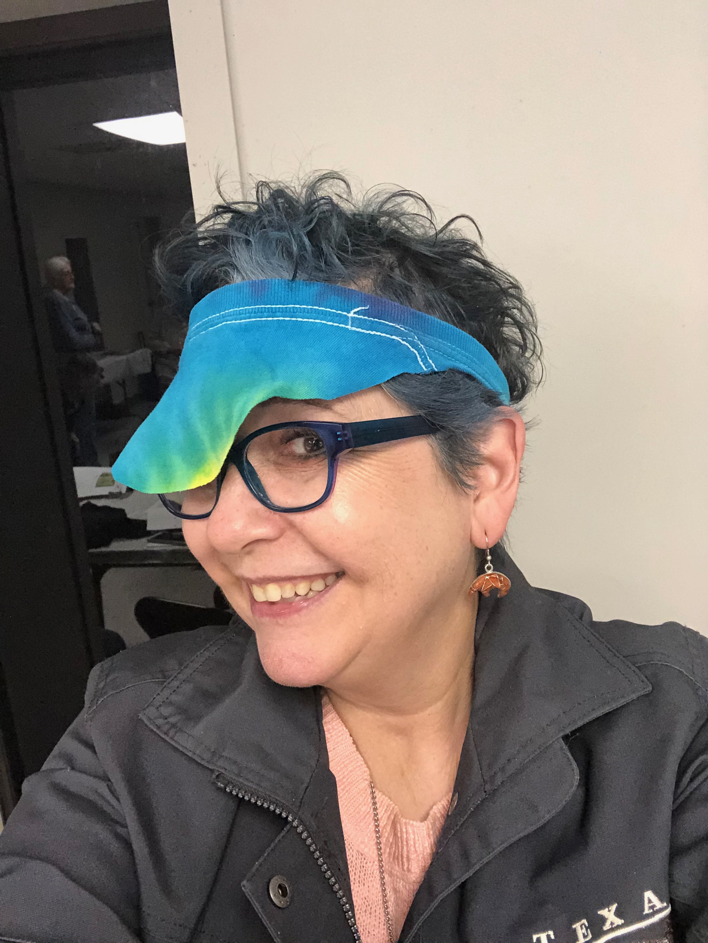 I attempted to recycle myt-shirt sleeve into a visor. I think I failed.