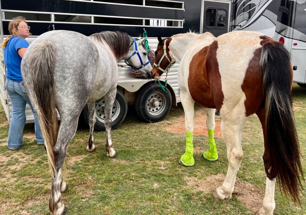 The best thing about today, however, came when Droodles came up to the trailer to get saddled. He and Apache were glad to see each other! Drew did baby horse things to Apache, and they nuzzled and groomed each other. It was incredibly sweet.