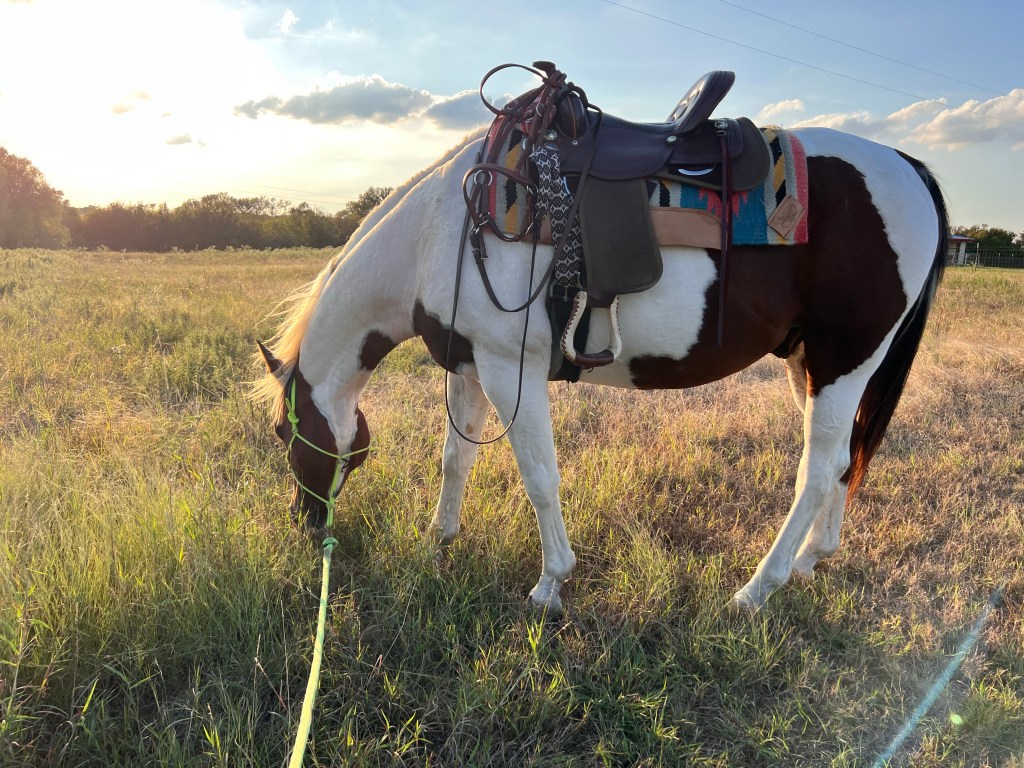 Then I got Apache out to see if he would do okay in my new tack. I got the saddle all adjusted and off we went. He did just fine!