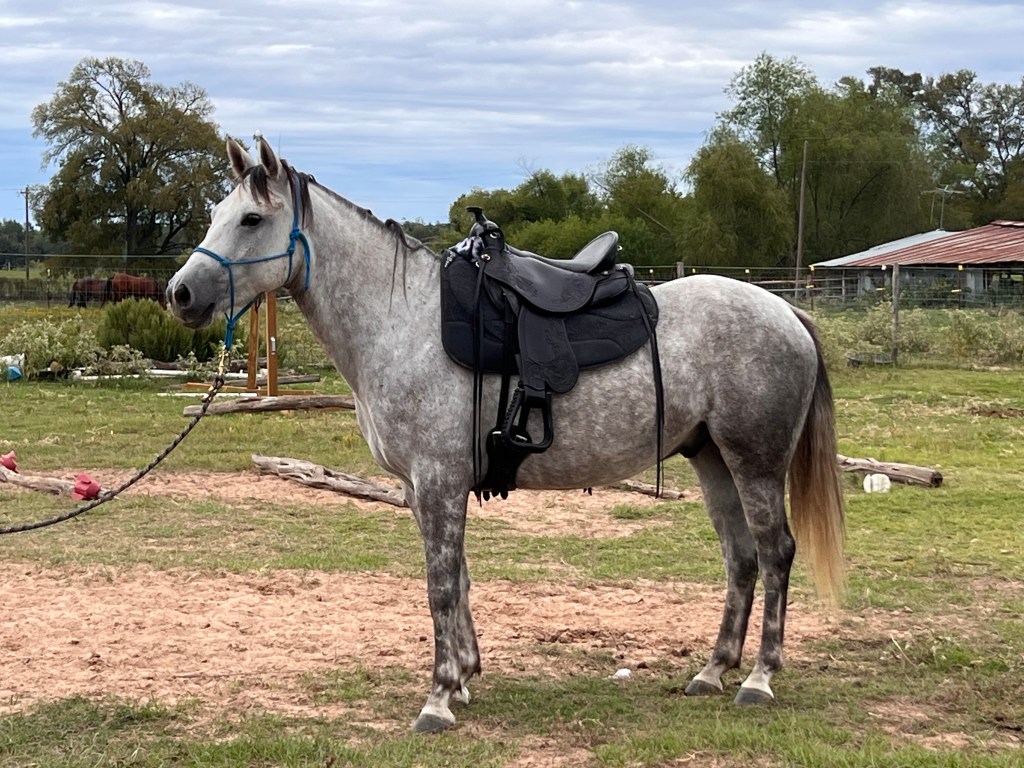 I like the colors, which blend with any horse (though if I’d known I was getting a gray, I might have gone with black). And it has conchos (silver decorations), but not too many.