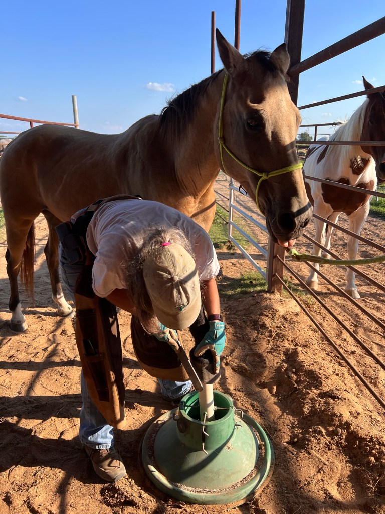Luckily, as I dialed, Mabel went to the water trough and drank. That made me feel better about colic (very dangerous horse issue). Tarrin suggested I see if she’d eat a horse cookie. I was relieved to see she would. Fiona reluctantly ate one, too. Whew.