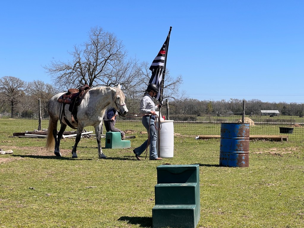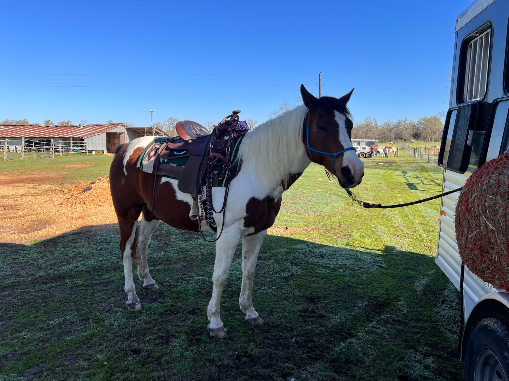 Meanwhile, Aragorn wasn’t acting like himself. He did not like being tied to the trailer. Much pawing and agitation occurred. This is more than his usual opinion. But I’m not worried. Sara is well prepared for travel, and Tarrin shared lots of travel tips. This was the only first animal oddity of the day.