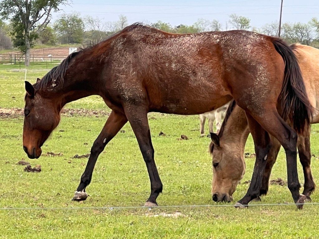 Things were calm until I went to feed the horses. They were very well behaved and I was happily watching them eat when I realized Mabel was not eating. She was sticking her tongue out and then yawning. Her food was no different from any other day.