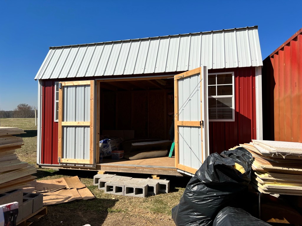 Today our renovation crew had a day off from Anita’s house, so they worked on fixing up a shipping container and a portable shed to be the new Hermits’ Rest hay loft and tack room.