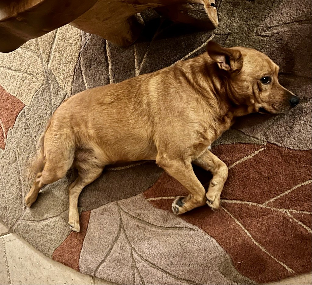 This young lass had her own skunk adventure over at Sara’s but has bathed herself. Good dog.
