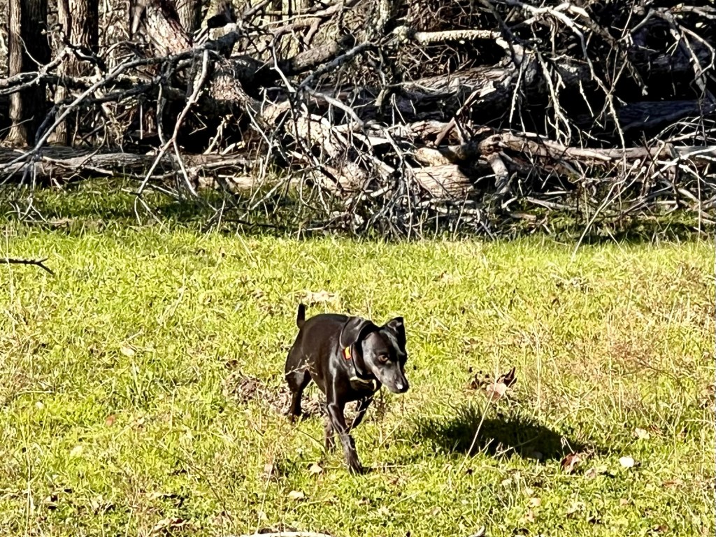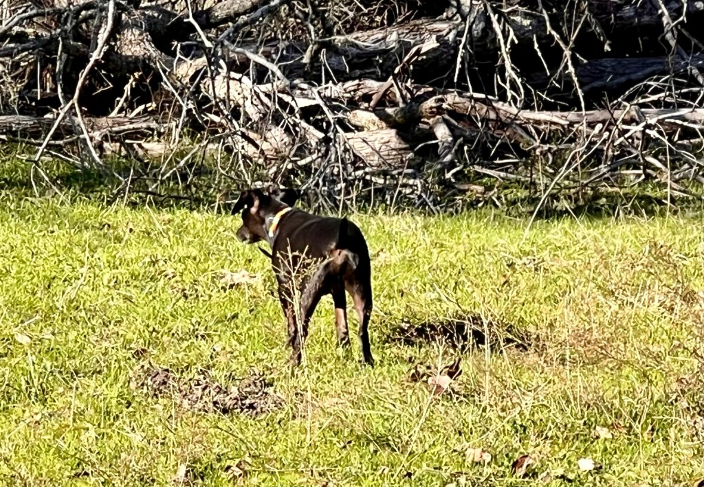 This morning Vlassic investigated where the skunk was. He heard something and turned tail to run. He’s experienced skunks.
