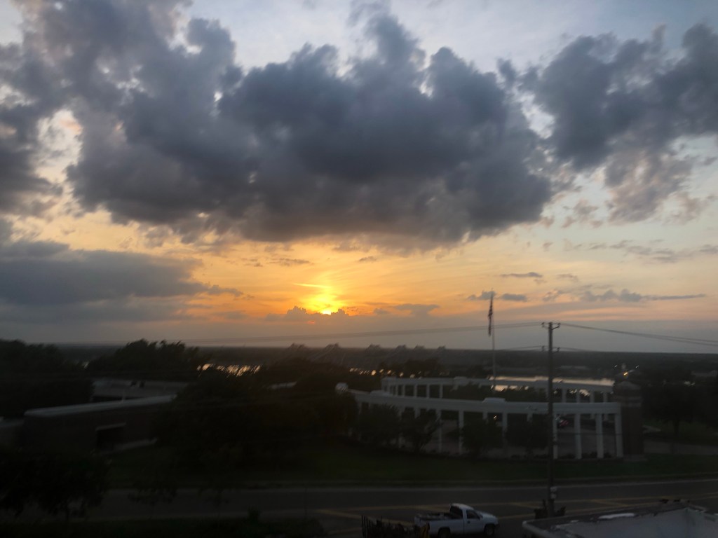 We had time to make it to the edge of Mississippi and stopped in Natchez. We lucked out, and our hotel room looks out on a memorial and the Mississippi River. It was lovely at sunset.
