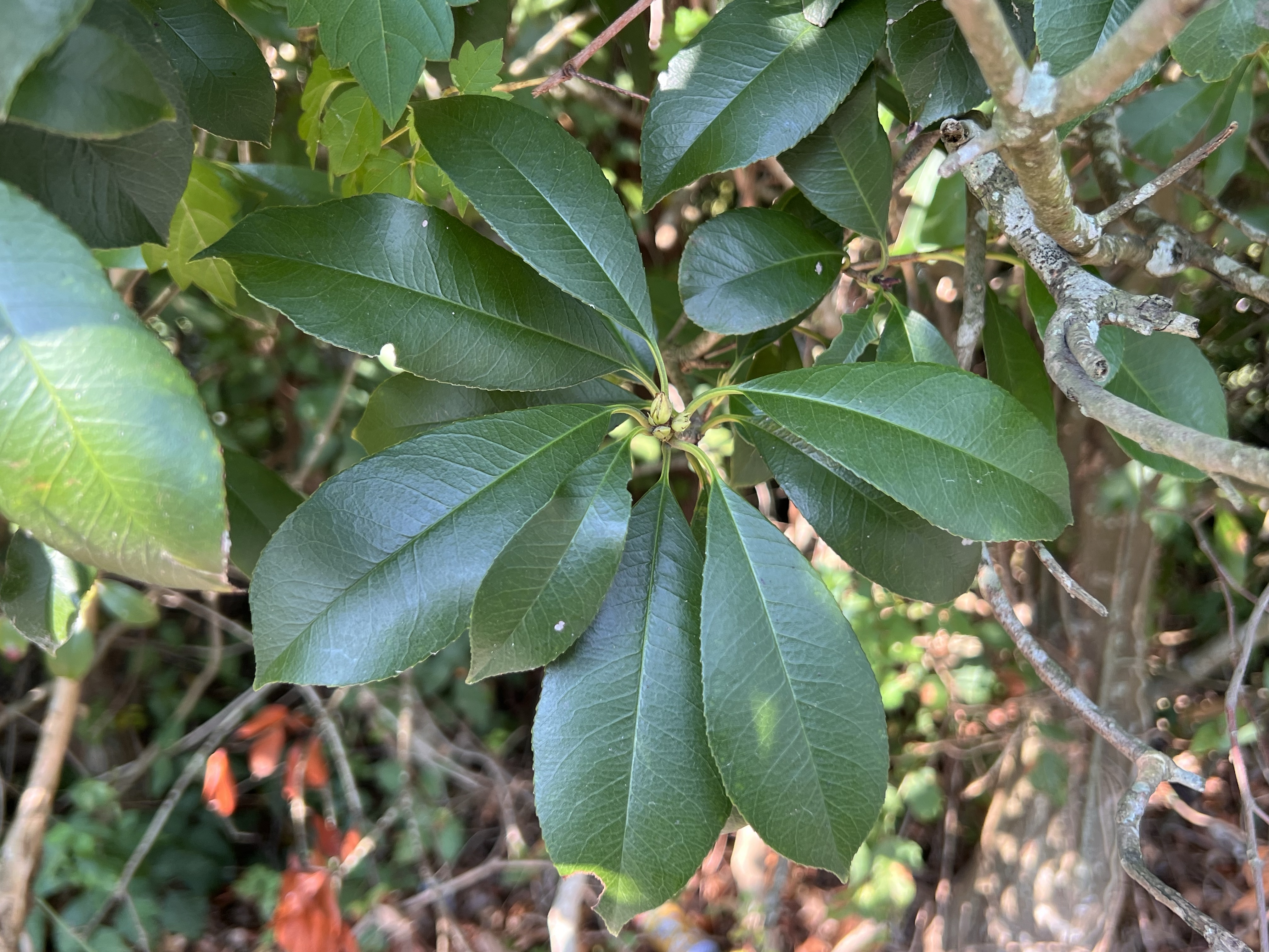 Pretty magnolia budTree with lots of burlsThis is a type of paper mulberry Chinese photinia Glossy privetNative saw greenbrier with cool insect damage Ready to go. I met his dad. This scary giant dog was across the highway.