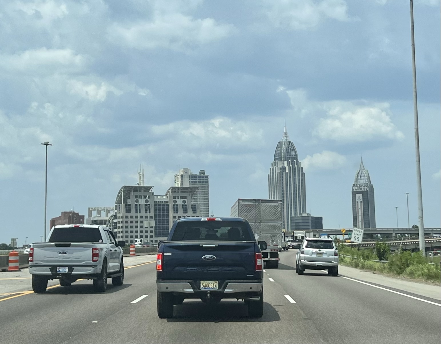 Beautiful bridgeA prison!Mobile Tunnel, another traffic slowdown Truck made a messA battleship Driving on I-10