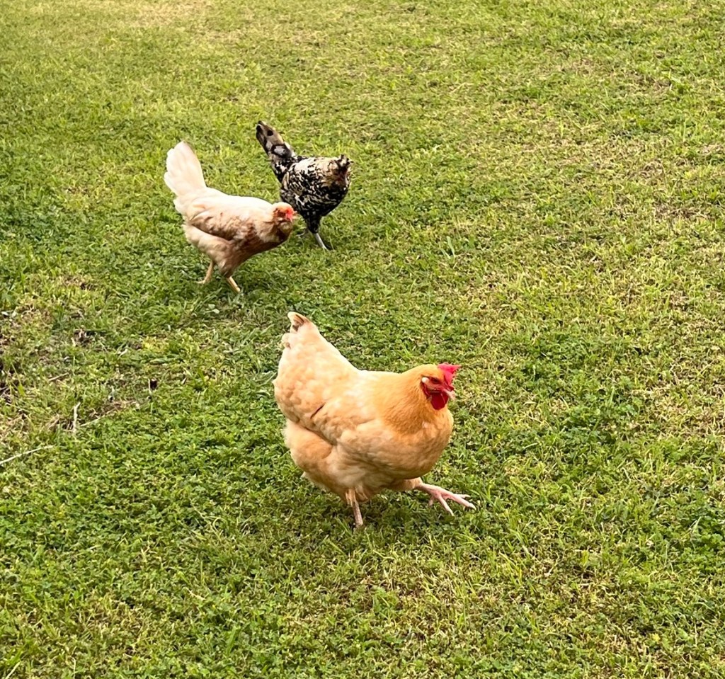 She’s free as a bird, or in this case, a turkey with her favorite water bucket and some chickweed.