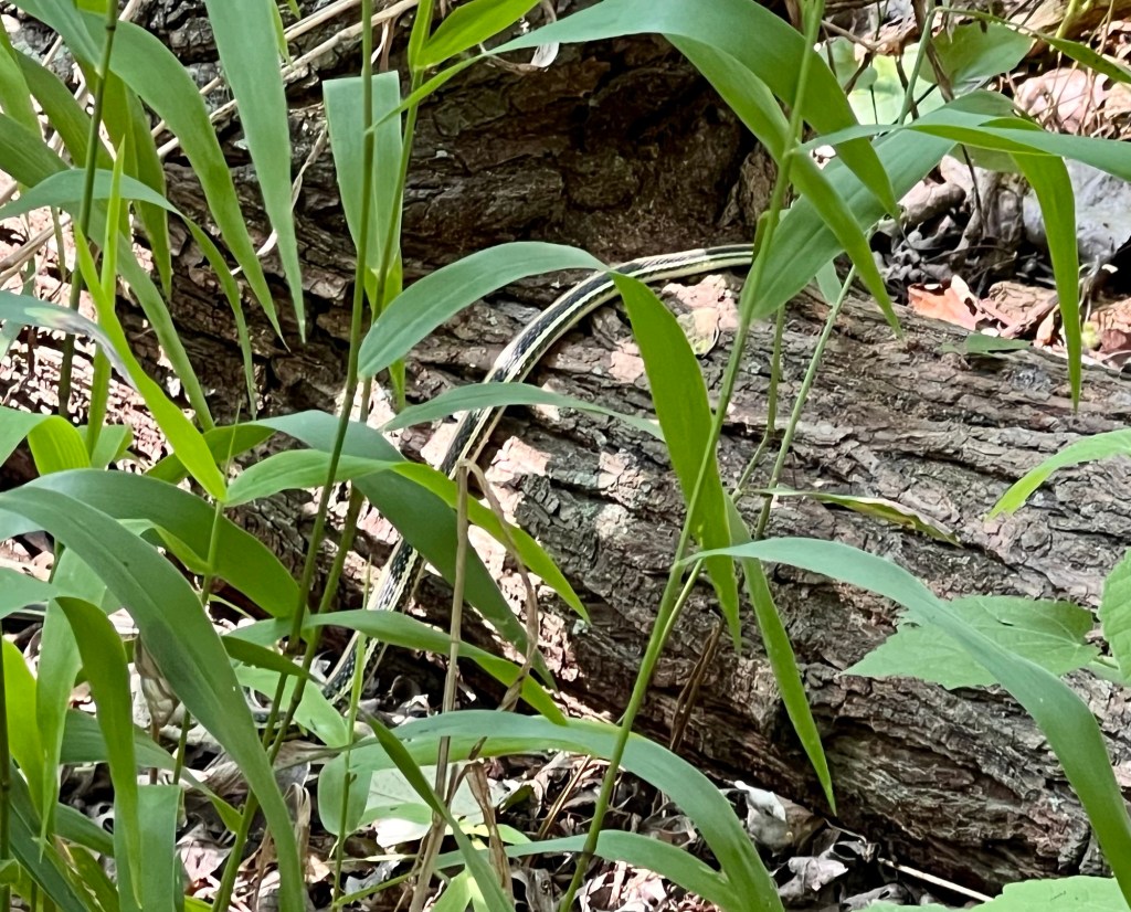 I was able to walk the river trail, shortened, and I’m glad I did, because there were wrens everywhere. It was so much fun watching them. I also finally found a snake. It was a pretty ribbon snake. I got pretty hot, so more resting occurred. I really couldn’t do my usual stuff!