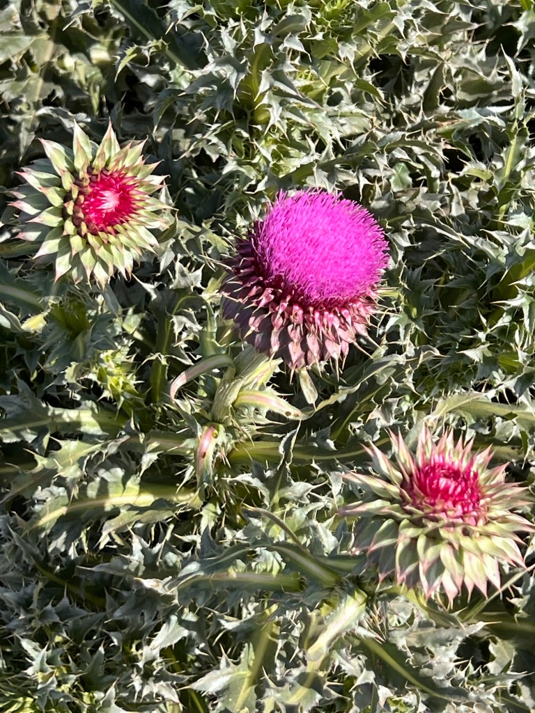 The kids found a scorpion Gordon’s bladderpod Lace hedgehog cactusThe boxcarDeceased Polyphemus mothBeautiful musk thistleRock shaped like TexasCemetery next to park.