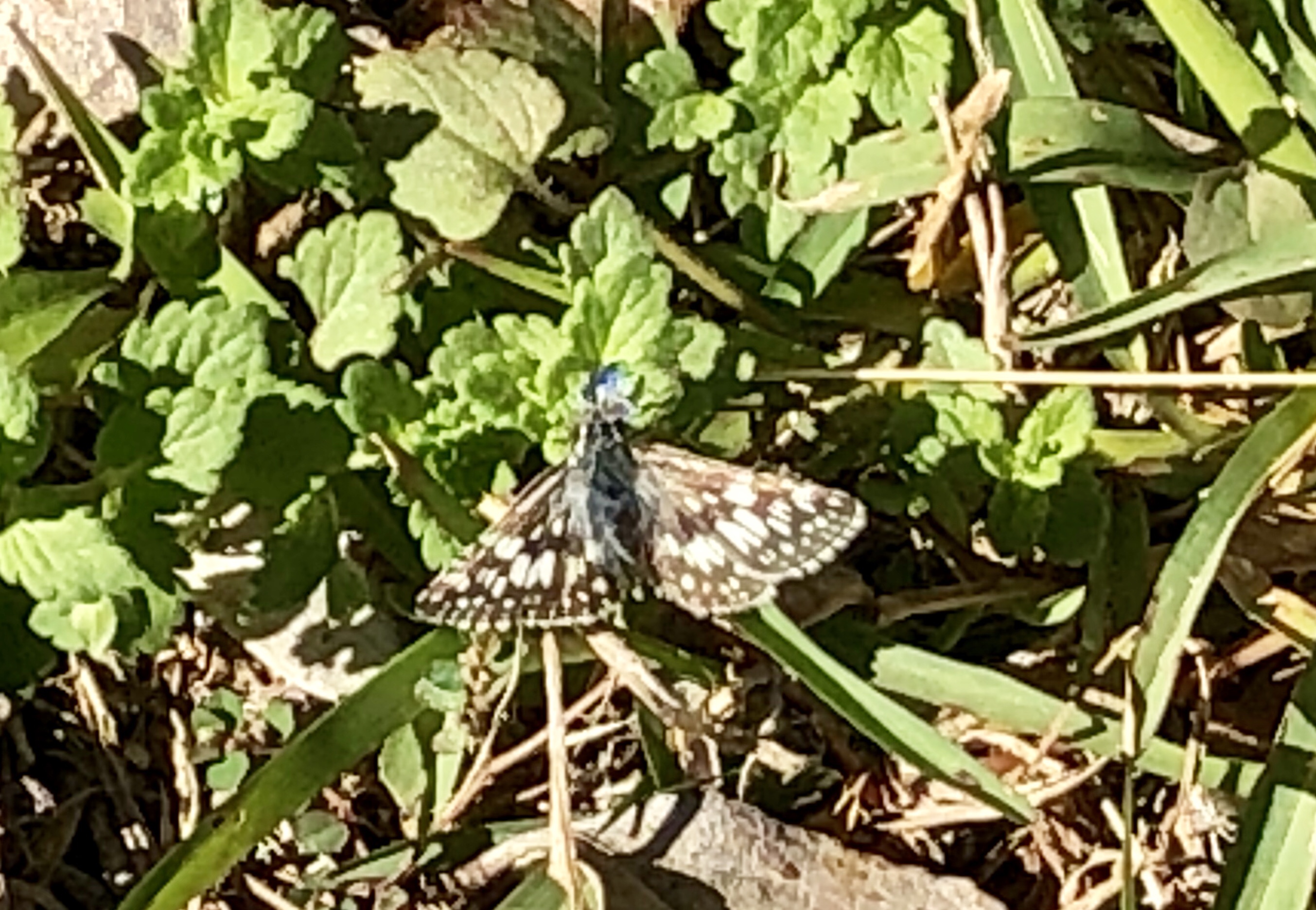 was surprised to find the lawn (sorta) around our old church property blooming away. Granted, they were tiny wood sorrel, blue speedwell, and pink storks-bill flowers, but they were enough to keep at least four kinds of small butterflies happy.