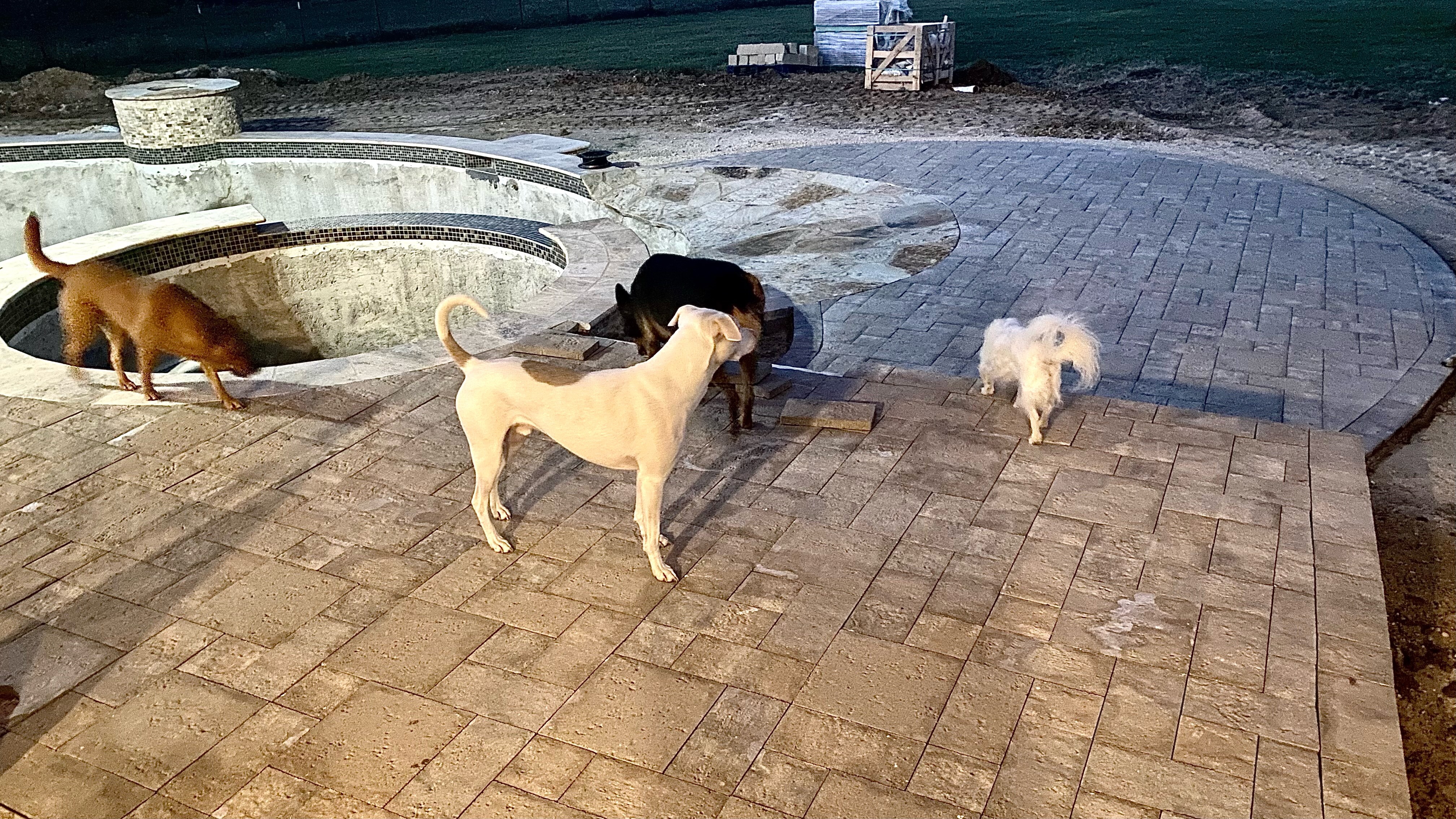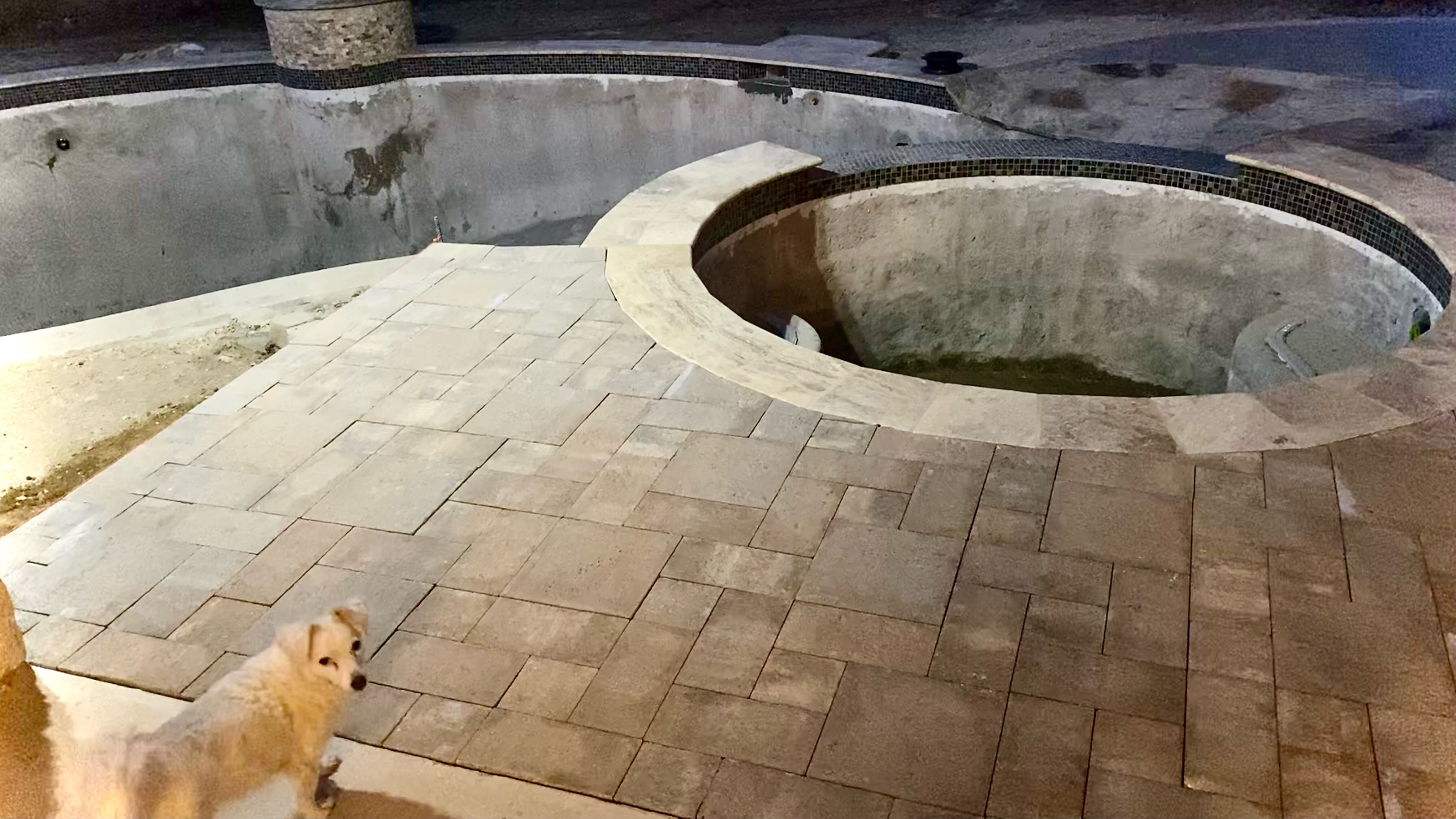 In other news, I got a few photos of the pool, and I was surprised to find out that the little tiles they put on the steps glow in the dark! I guess we hadn’t gone outside after dark since they put them in.