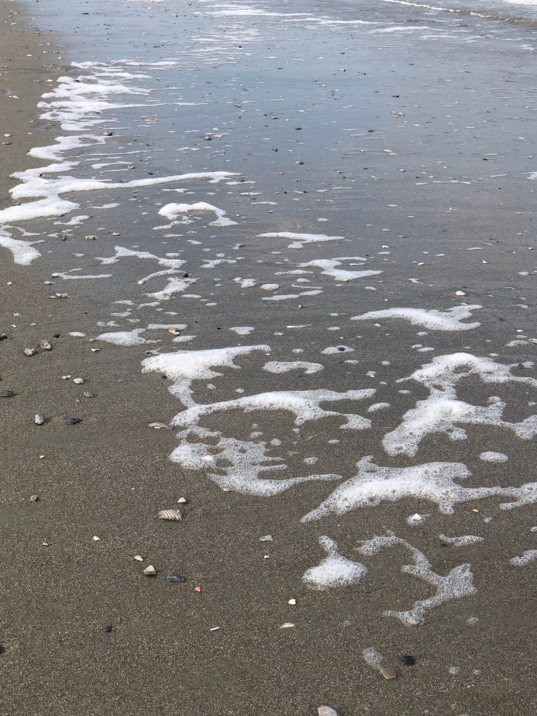 We have really enjoyed relaxing, watching birds, and letting the sea wash our feet. Sea bubbles are endlessly fascinating!