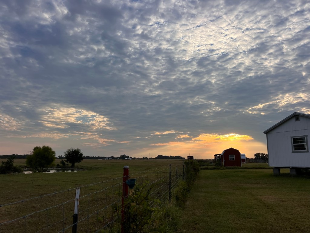 It stopped pretty quickly, so I was able to feed the chickens. I saw the sun come out, and there was the bookend to my day!