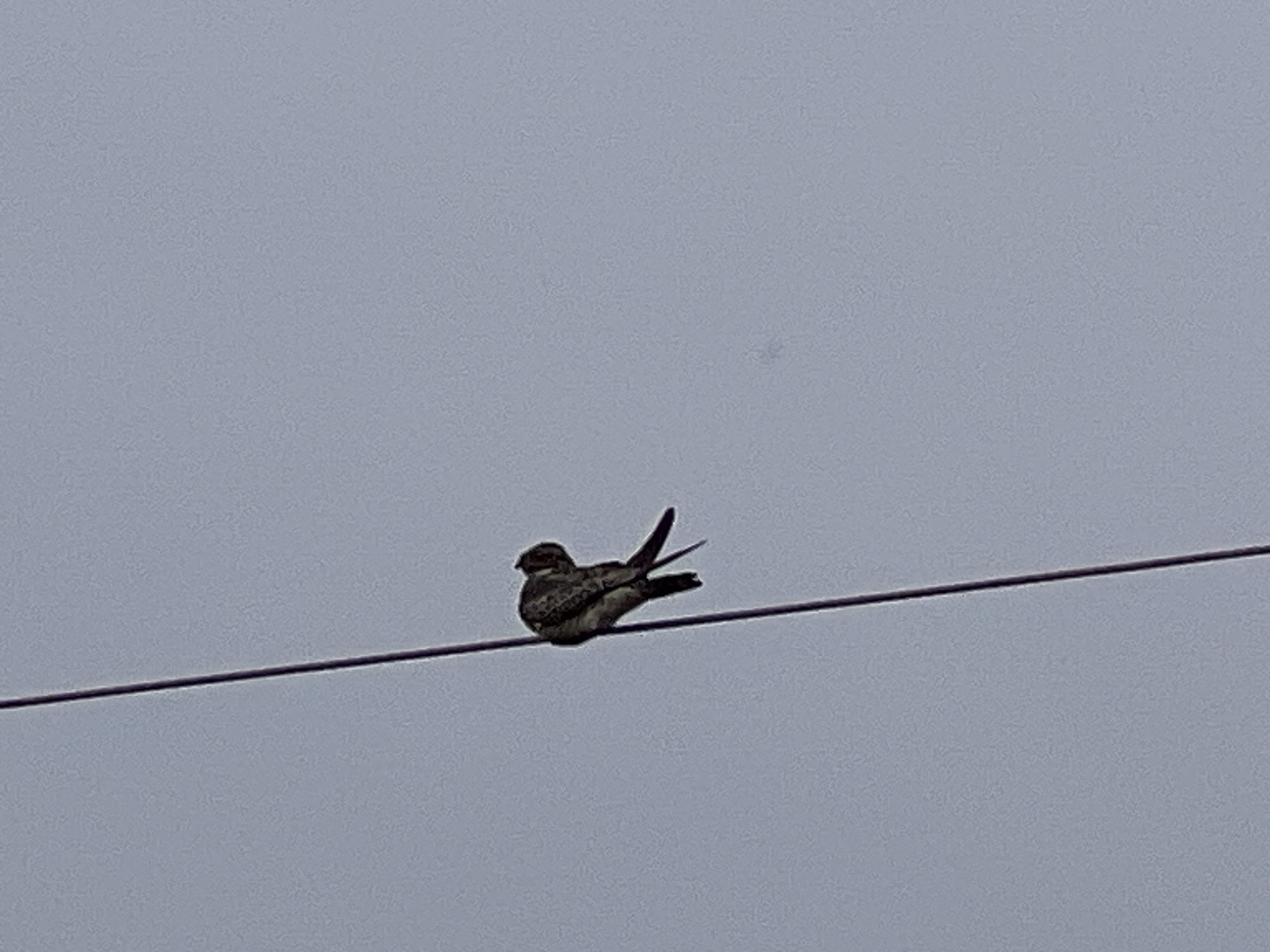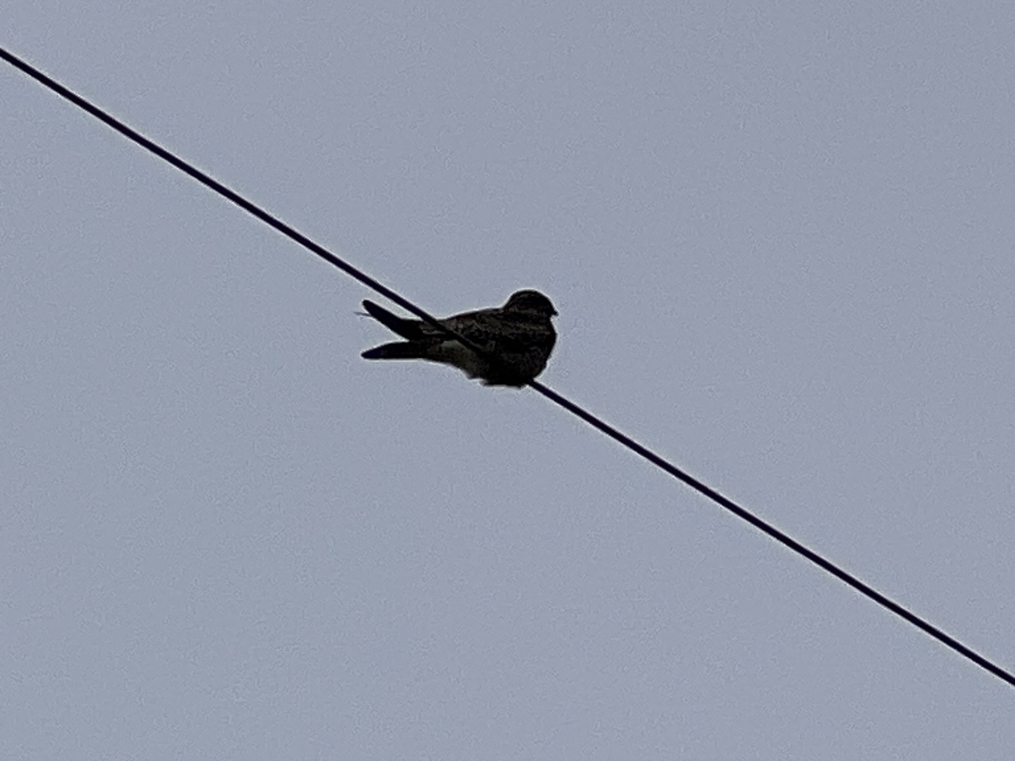 I went for a nice walk and enjoyed watching swallows and nighthawks catching bugs around sunset. A wonderful surprise was seeing a nighthawk sitting on an electric wire in front of our house. You rarely get to see a perched nightjar.