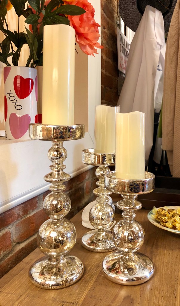 You can also see my Mercury glass candle holders and a vase I got to go on the glass shelves, when they arrive.