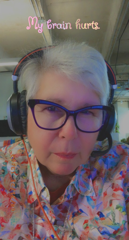 At night, though, I have a completely different type of dream when I’m feeling anxious and overwhelmed than when things are just normally stressful. First, it’s the dreams about being in school and not knowing where to go or what the test is about. Then I’ll be at a large conference trying to avoid the scary people. Lately I dream about trying to get dressed in fancy clothing, but having forgotten how. That sounds like a COVID dream, doesn’t it?