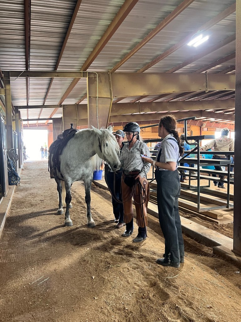 But after some initial irritation, I let Apache chill in a stall, and he settled down. We ended up doing our best Trail pattern ever. We even did the gate! He really didn’t mess up anything but the side pass and a bit with the garrocha pole. But we did it all! I think we were pretty calm, too.