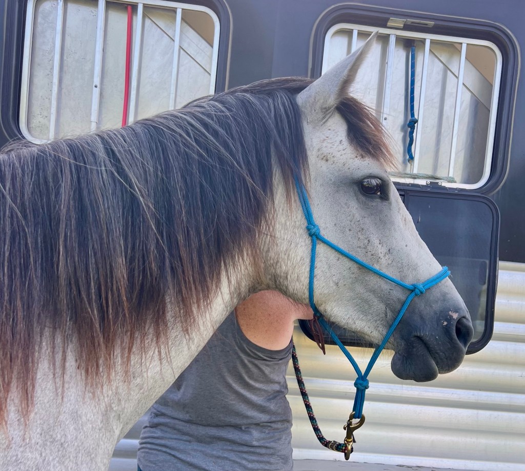 After he calmed down and did his exercises, I got to ride him around a bit. We did just fine in an unfamiliar place with interesting distractions. And he’d walked right to the trailer so I didn’t have to carry his saddle.