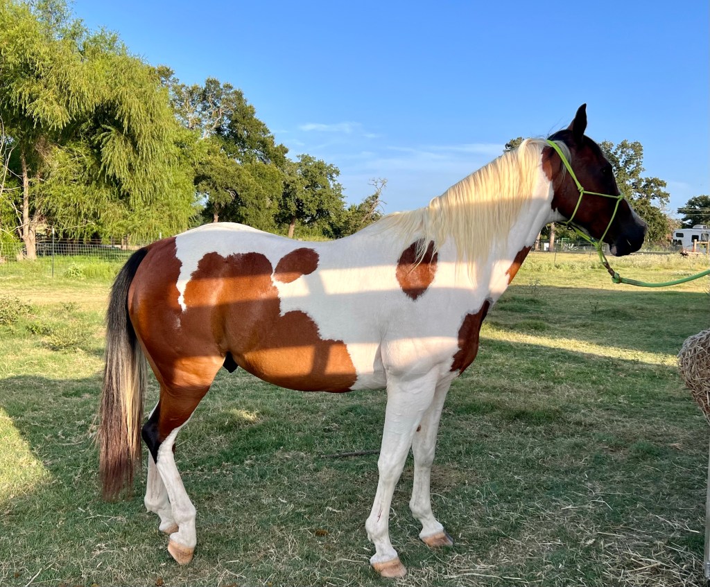 Tarrin was giggling like a kid and telling everyone how happy she was to see Apache shedding sole on his feet. He’d never done that before he started his medication. And the feet are white, not yellow! She found evidence of some bruising, which could explain why he hasn’t been to keen on picking his feet up. Now he should feel really good!