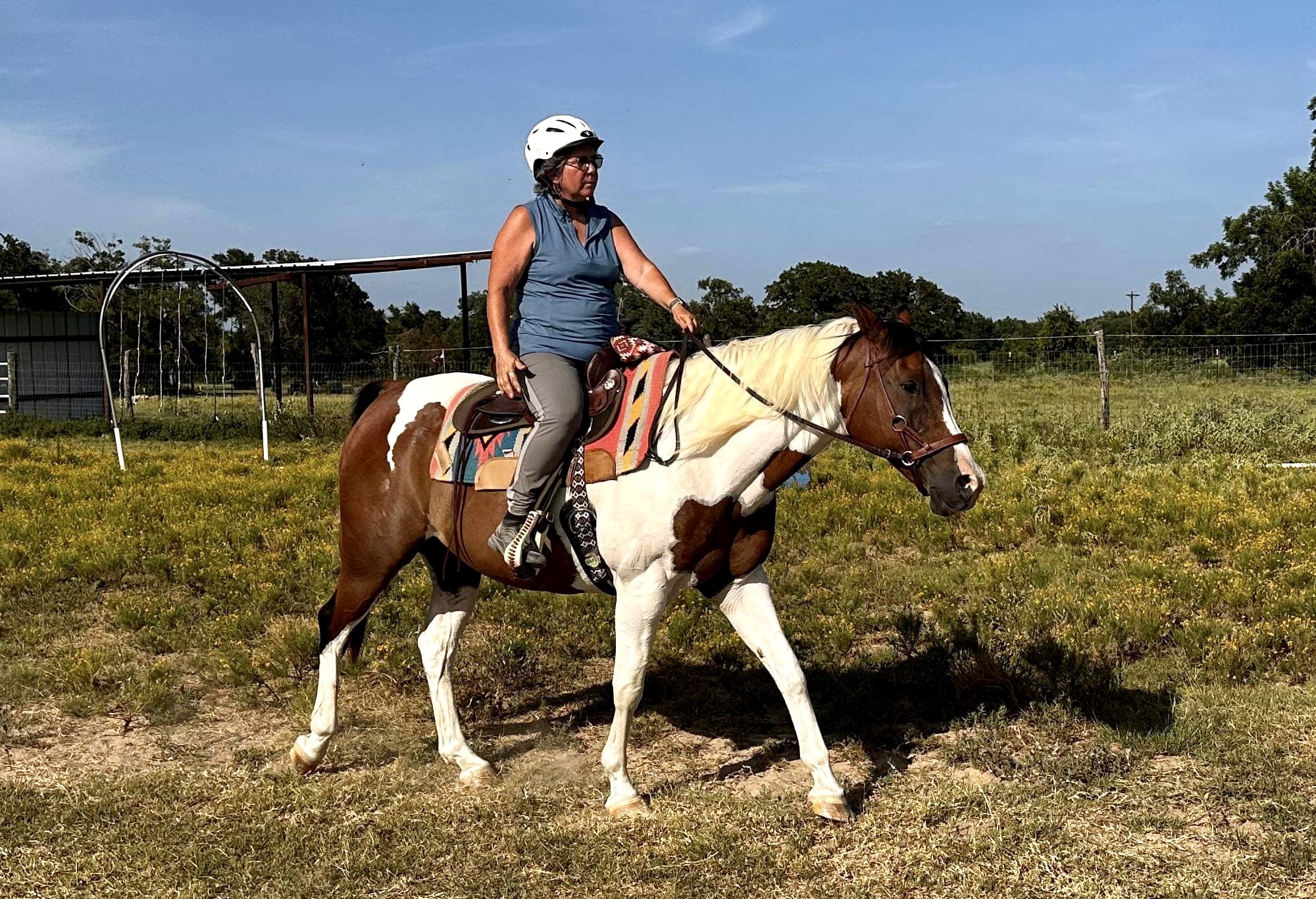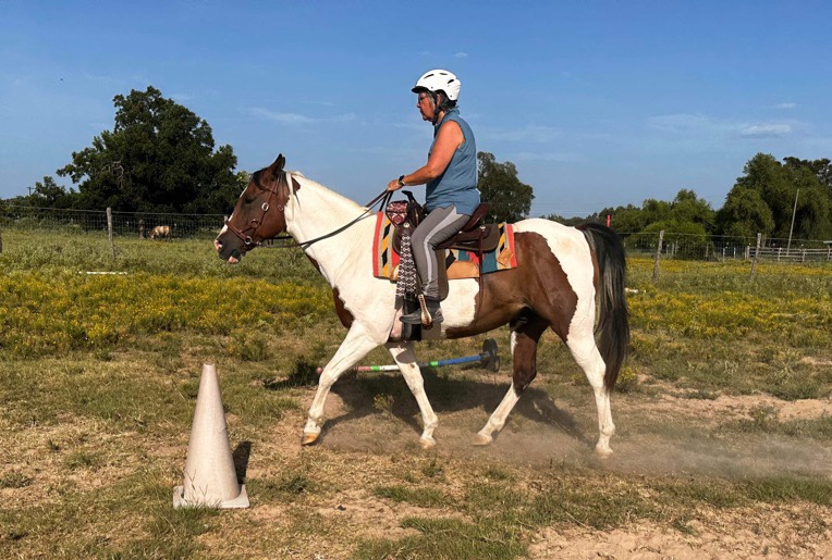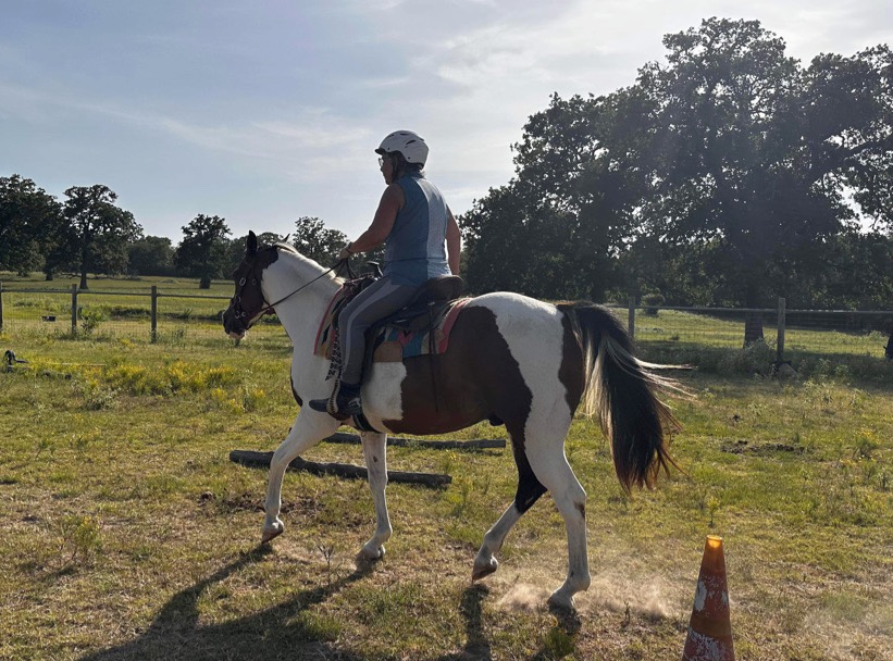 Riding him was so much fun. He was so responsive to everything I asked him to do! That’s what I’ve been trying to get to with the horses. It takes me learning how to ride, the horses learning what they need to do, and getting everyone healthy and in shape. Tarrin’s so right that a pain-free horse can learn better and definitely in the case of Apache, they can listen better.