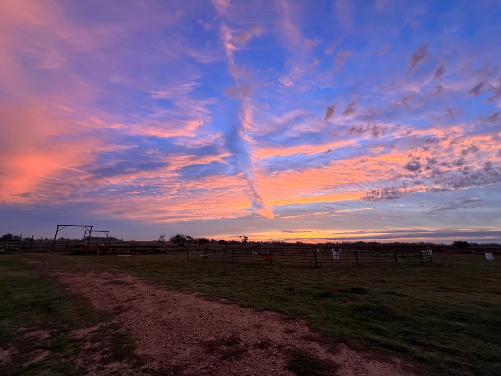 Apache made me proud. Even of the yellow. Other prizes, a cool hoodie, riding pants and a cleaning brushNeighbors with bucklesSara got a cool gift certificate. I got to wear my alligator boots, because Lee found them in the shipping container. So proud of Aragorn. SunriseSunset