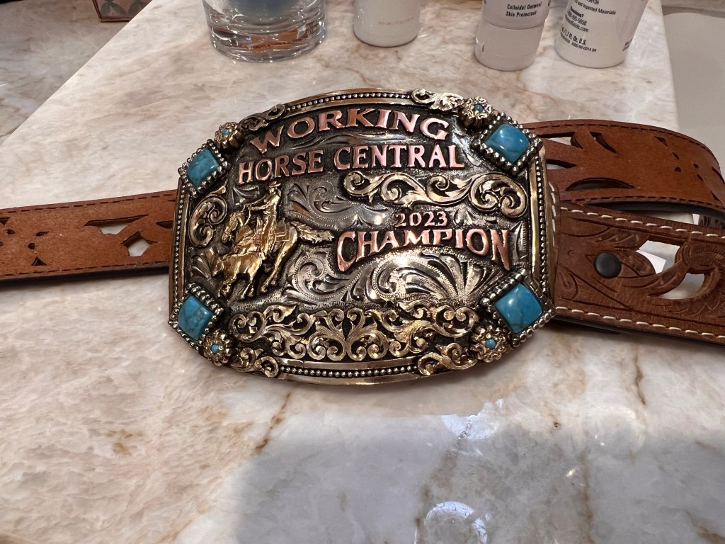 I feel so legitimate now. I guess I always wanted to earn a buckle and work hard for it. Sara can wear hers to her next Working Equitation show! We are champions.