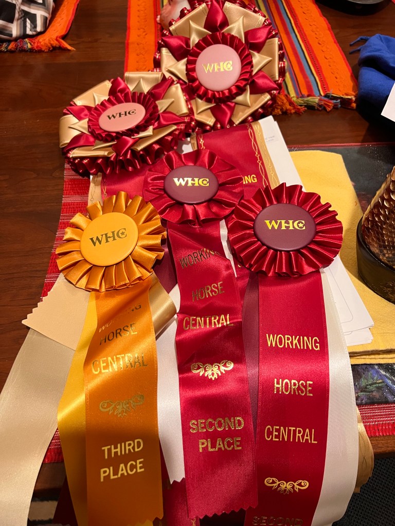 You know, win, place or show, like in horse racing. We came in third in all areas of the Spring Fling Working Horse Central show, in the Beginner category. That’s what we are, rank beginners, and I’m pleased as I can be.