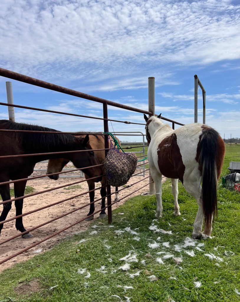 There was a lot of horse moving involved. They were fascinated when we moved the hay ring and had to try to see if they could knock it over. Then they were extra fascinated when the new bale came in (after Declan heroically figured out how to stab the rather unstable bale with the hay forks so it could move).