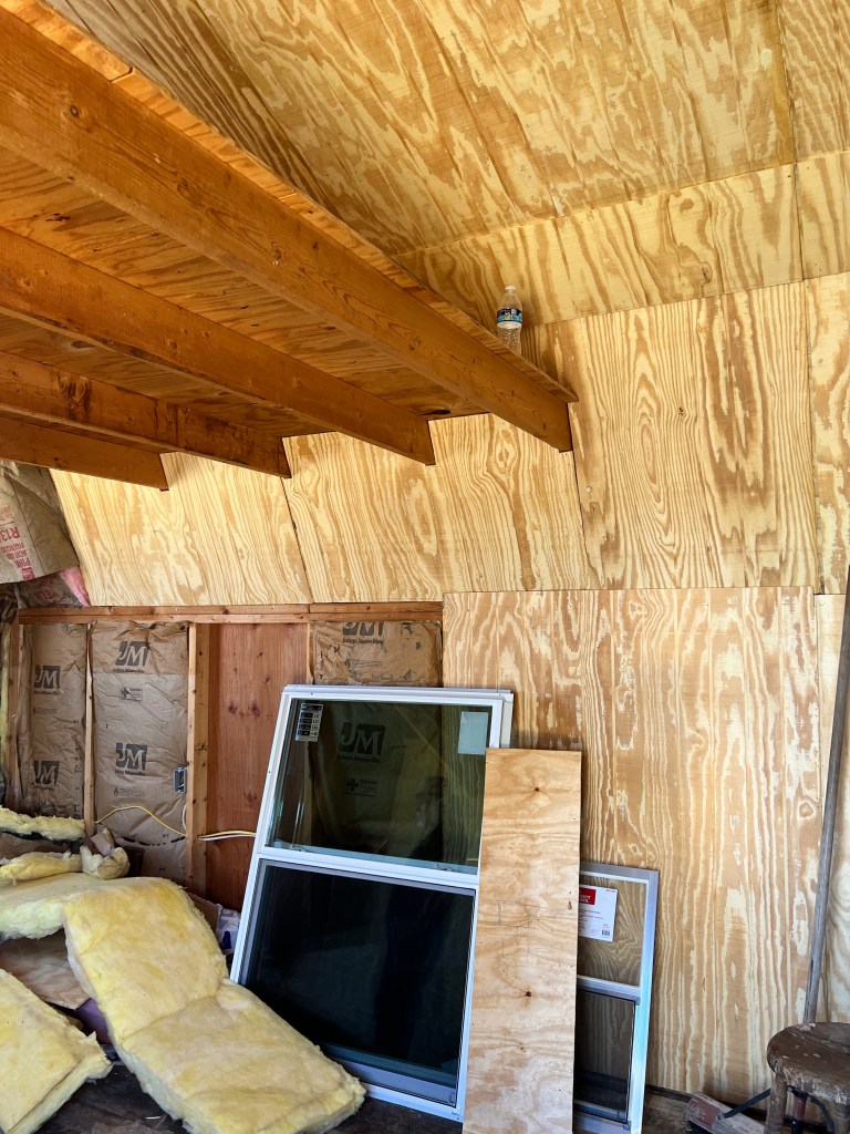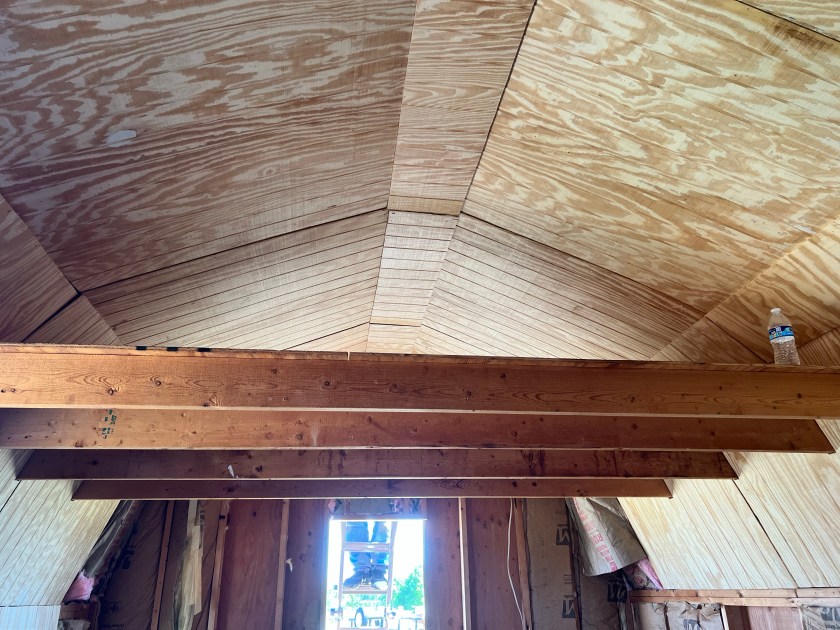 What about the Suna shed? Well, they put down my outdoor rug for fanciness, but that’s it for now. They don’t want to bring in furniture until the air conditioner is installed. The electrician isn’t scheduled yet but it should be soon. That will be good, since we don’t want the leather molding.