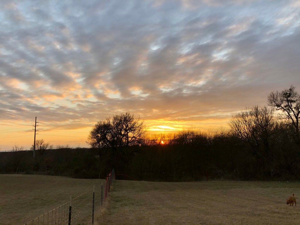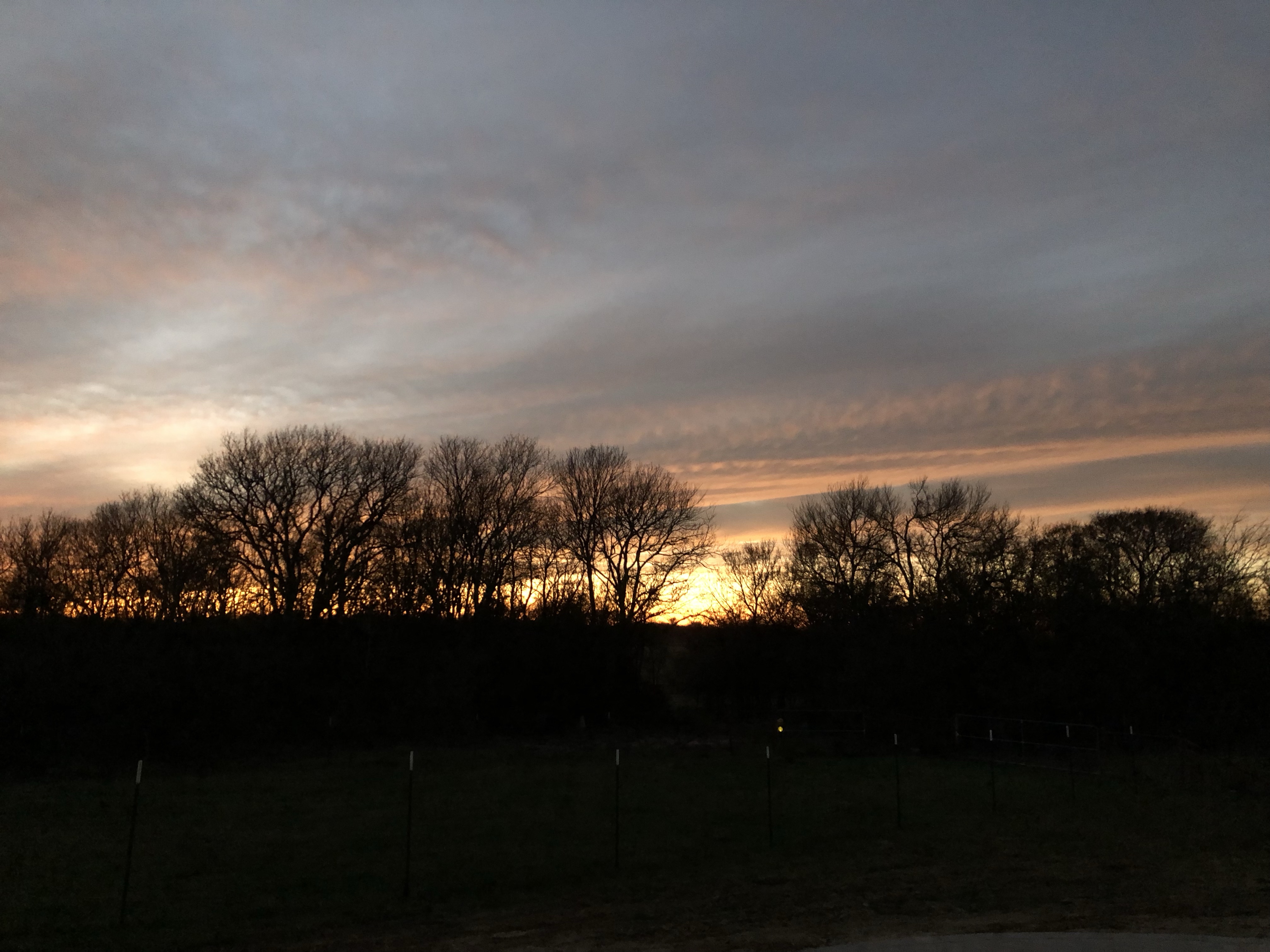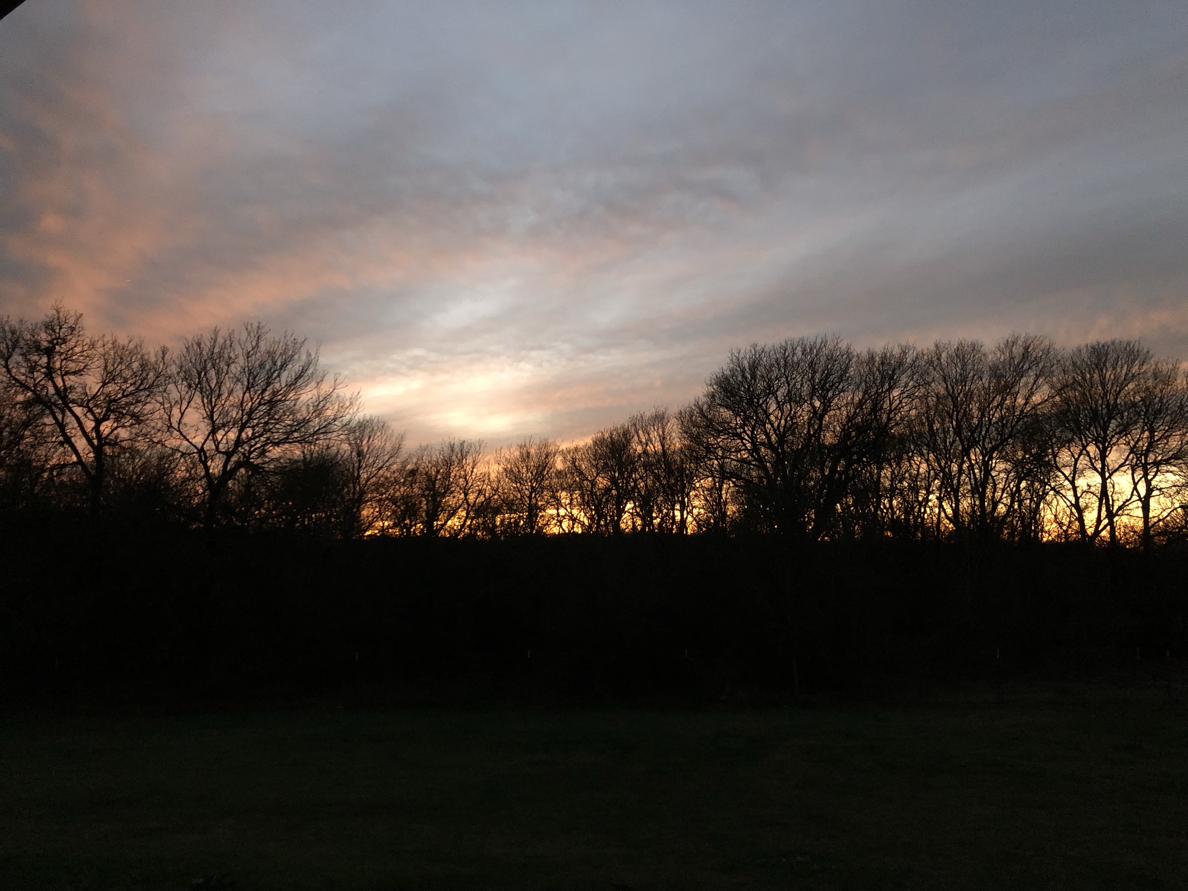 Lee and I took a walk this evening and were looking around with the dogs and everything her. The sun was so beautiful in the sky as it was going down. The dogs were playing, the clouds were scuttling across so beautifully. Some of them were fast and some of them were slow. It was pretty cool.