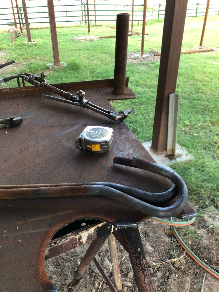 And yes, a lot of work got done on the horse pens. It’s really moving along! After work and my Friends of LLL meeting, I got to watch the process for making the tools to set the vertical bars that are next. These hooks were made from straight pieces of metal.