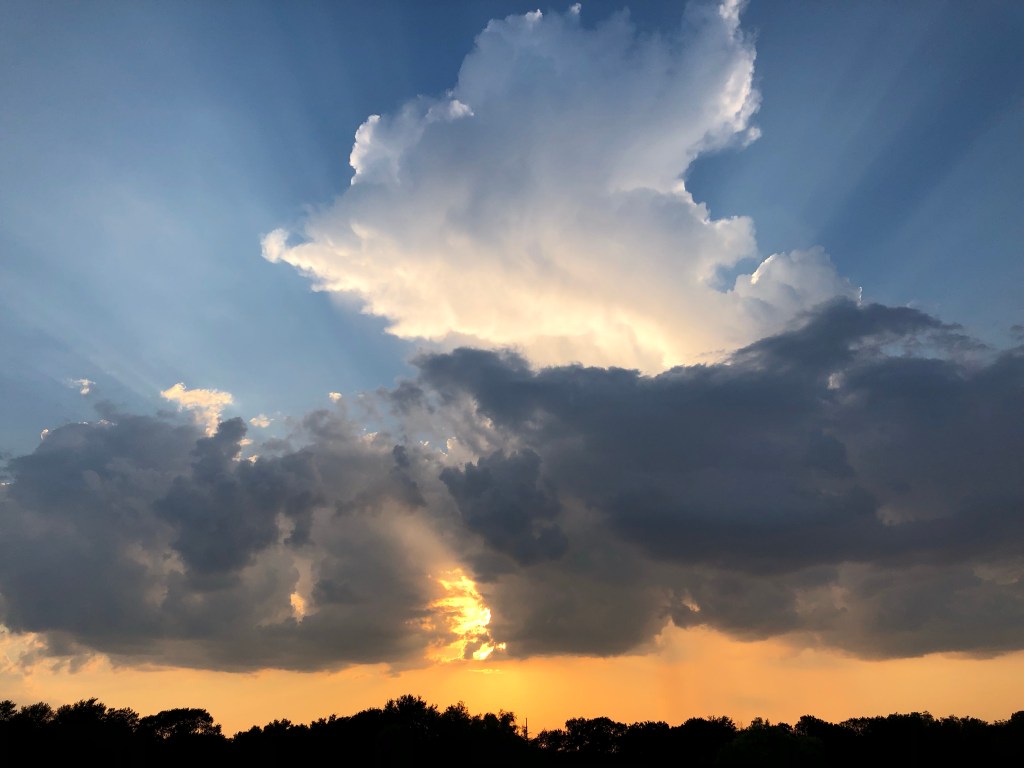 I hadn’t seen a nice sunset in a long time. It was too rainy for a long time, then it’s been so blazingly hot I didn’t go out to look, though Lee reported at least one good one. Tonight? Glorious.