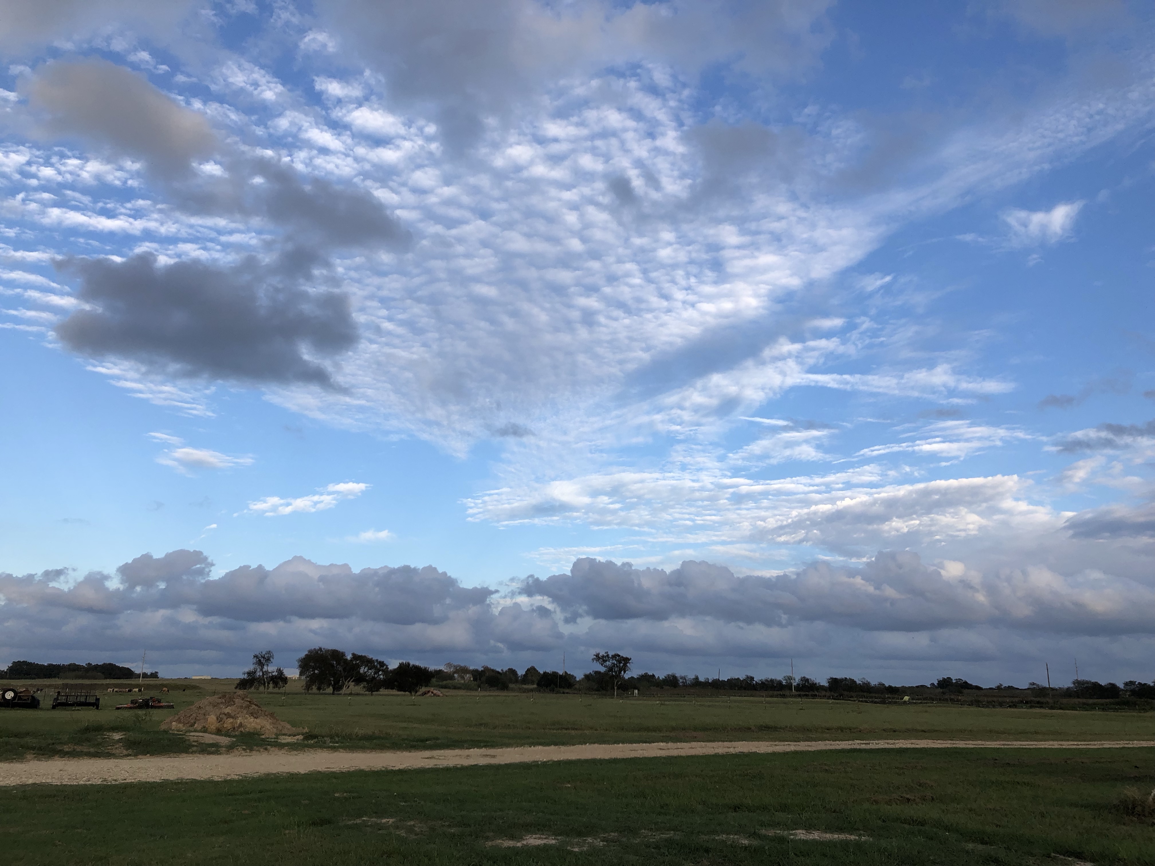 And finally, Lee and I went on a nice ride out in the country last night, to enjoy the daily miracle of a Texas sunset after a day that wasn’t too hot or humid (I barely sweated when I rode Apache around 5 pm). With all this open space, I enjoy either a lovely sunrise or a pretty sunset nearly every day, even when the air isn’t full of dust or smoke from fires and such. Or rain from hurricanes, which we won’t have, but our friends to the east are having way too much of.