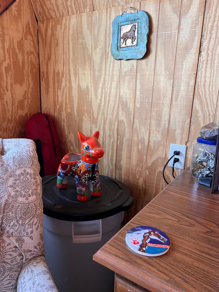 The tack room at the ranch is getting a much-needed upgrade. We’ve limped along with tarp covering its ancient shingled roof, but the winds in recent days have shredded the latest tarp and blown off more shingles.