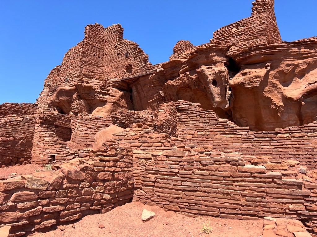 Then off we went to another stop, with breathtaking scenery all the way. This was the Wupatki Pueblo. It’s been so nicely preserved and cared for. They removed additions from the 1930s and made it more like it used to be. It is amazing that no one messed with it for hundreds of years. I did re-learn that most pueblos were built like apartments, not in caves.