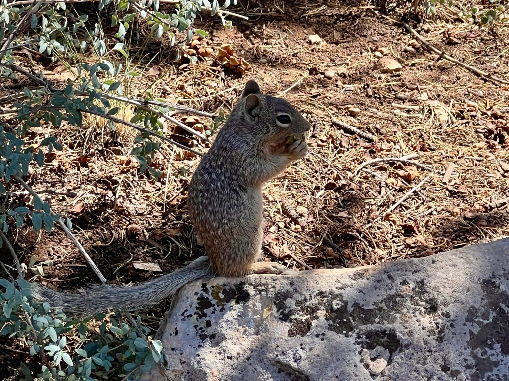 Of course, I looked for birds, plants, and animals. I got photos of two birds I have been hearing all week, the scrub jay and spotted towhee. I also saw many cute rock squirrels, a chipmunk that was too fast to photograph, and elk. Nice.