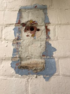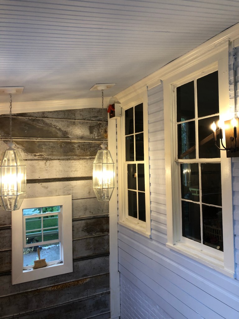 Fun historical house fact: apparently the Pope House was once blue or blue-gray. This is where the old front light fixture was. It will be covered up by our sign, eventually.