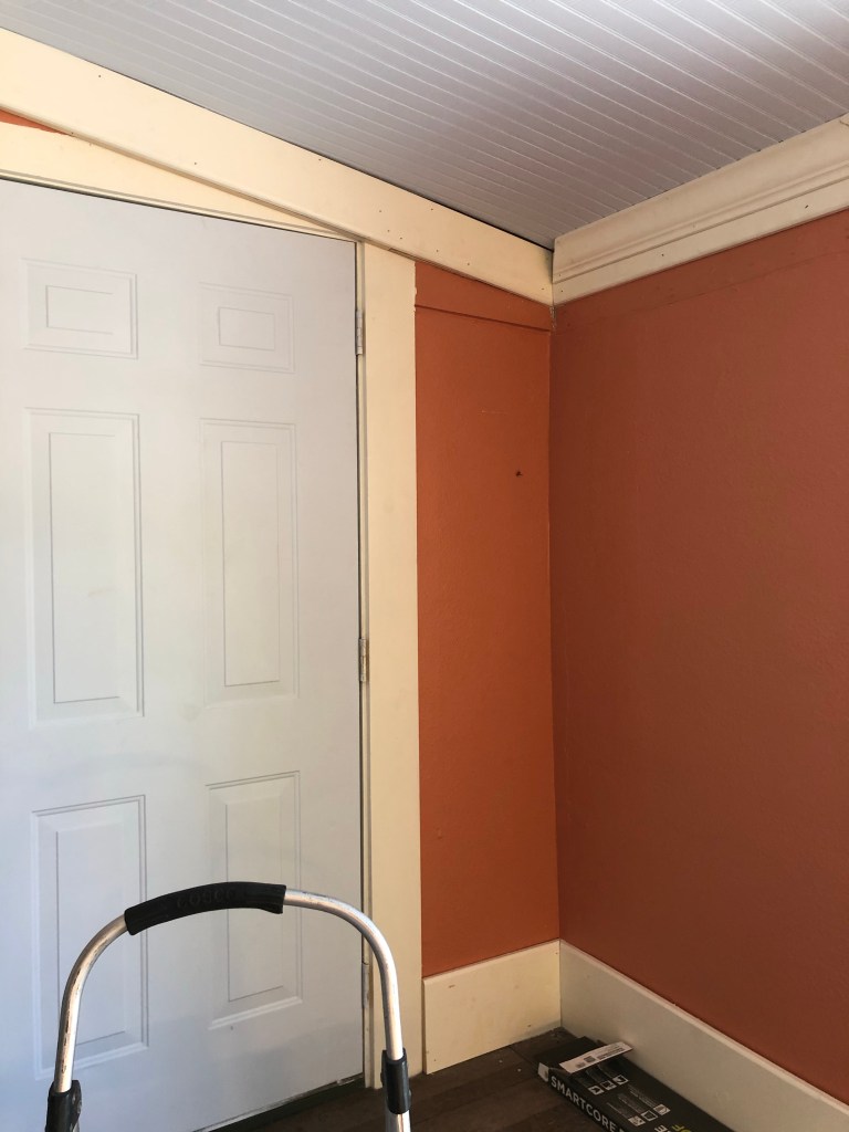 Since the baseboards were already cut, that went fast. And the quarter round was already painted. So much nailing went on!